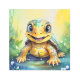 An adorable sea turtle wall art piece featuring a chibi style cartoon sea turtle swimming under the sea in yellow and green.