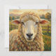 A cute notecard with a cute ewe pun with an adorable impasto style sheep on an old rustic farm looking at you. The back side is blank.