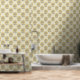 Stylised cute floral block print style wallpaper with whimsical sunflowers in warm earthy tones of mustard and light beige. Perfect for nurseries, girls bedroom or kids bathrooms