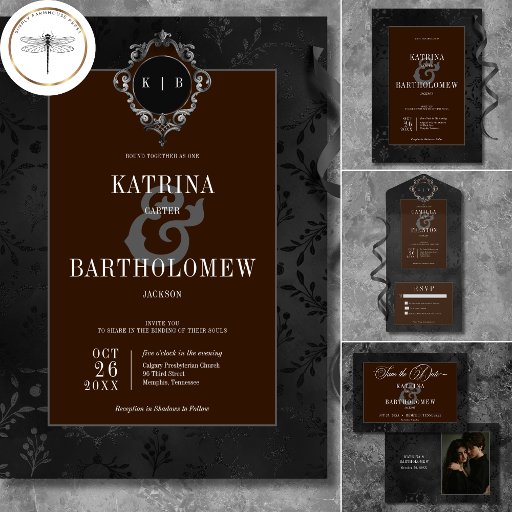 Step into a world of dark elegance with our captivating gothic wedding response card with no dinner choices. Set against a stunning black-on-black damask satin vintage floral wallpaper, this invitation exudes an air of mystery and timeless charm. The text box background in rich umber brown adds a touch of color. With vintage fonts and an aged look that exudes sophistication, this invitation is a perfect blend of old-world allure and contemporary appeal. Embrace the allure of the past and invite your guests to witness a love that transcends time with this captivating gothic wedding invitation. Created by Simply Farmhouse Press.