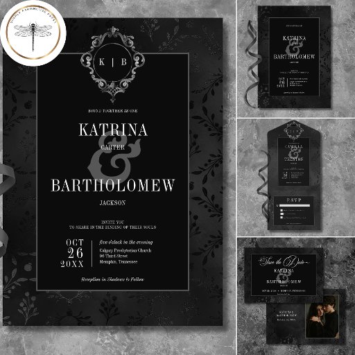 gothic victorian weddingblack satin damaskdark moodyspring summer fall winterunconventional uniquevintage dark vintage floralcreepy spookyhalloweenmongram initials
