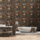 Dark moody jungle Botanical wallpaper brings layered, maximalist energy to your space. Stylized botanicals, deep florals, and ornamental medallion motifs unfold across a rich, dramatic background, creating a moody statement wall with depth and movement. Earthy tones of espresso, olive, ochre, and slate give the pattern a grounded, eclectic character that feels both global and modern. Designed for bold interiors, creative studios, dining rooms, bedrooms, or anywhere you want texture, drama, and visual richness.