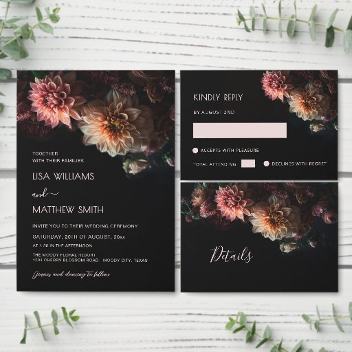 Dark Moody Chrysanthemum Flowers エンクロージャーカード