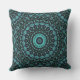 Bring vibrant, calming energy into your home with this eye-catching throw pillow. The design features an intricate mandala pattern with a mesmerizing radial symmetry in shades of turquoise and teal against a dark, nearly black background. The mandala design is made up of delicate floral motifs and flowing lines that radiate outward like petals, creating a sense of depth and motion.