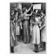 女の子のためのヴィンテージの本から10代ののアートワーク。先生がリストを壁にのまわりに投稿するときに集まる女の子のグループを表示