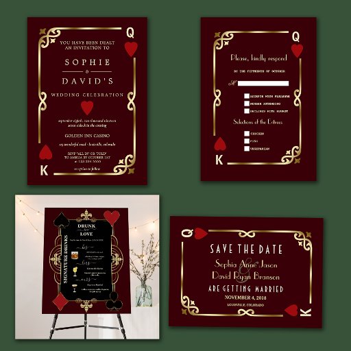Deep Burgundy Casino Las Vegas Poker Wedding 招待状