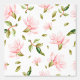 Our design captures the delicate beauty of light pink magnolia blossoms, painted in a watercolor style, blooming gracefully against a pristine white background. The flowers are interspersed with calming green leaves, adding natural depth and a touch of enchanting freshness.