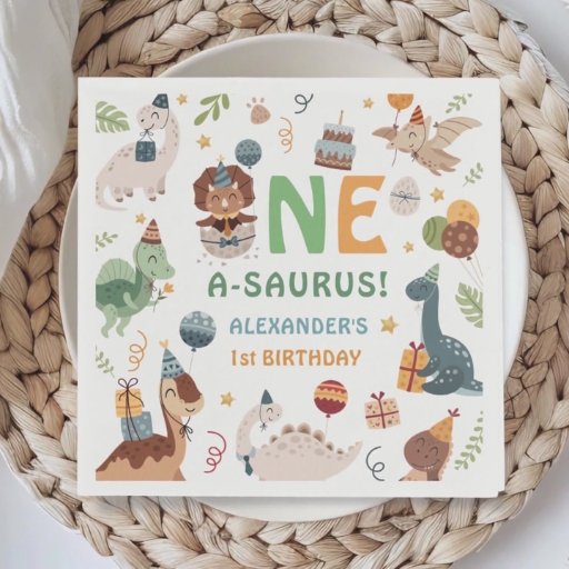 Dinosaur One A-Saurus Boy 1st Birthday Party  招待状