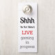 Preserve your gaming sanity with this attractive and straightforward message. Give others a heads up to be quiet, when they come into your space. Featuring a combination of script and modern typography, this door sign gets straight to the point. Place where it can easily be seen and play in peace!