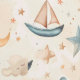 A dreamy nursery pattern with sailboats, stars, moons, and clouds in soft, calming tones — perfect for baby gifts and nursery décor.
