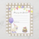 ラッキー・ダック。水彩子供の誕生日パーティー。水の色の誕生日の帽子で可愛いアヒル、ベリーとケーキ、紫色のバルーン、フラグのフェスティバルガーランド。ベージュブラウンのケージの背景。