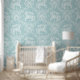 An elegant, storybook-style pattern featuring hand-drawn carousel horses and florals in a soft dusty aqua palette. Ornate Rococo-inspired details and a symmetrical layout create a whimsical yet refined design perfect for nurseries, children’s decor, and vintage cottage interiors.