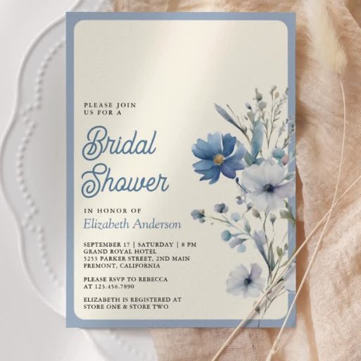 Dusty Blue Boho Wildflower Wedding アクリル招待状