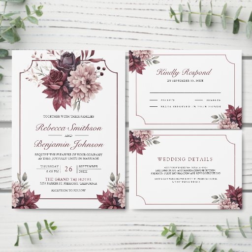 Dusty Pink Burgundy Floral Frame Wedding アクリル招待状