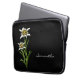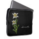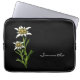 白いエレガントアルプスの花Edelweissの美しいグラフィックで黒で作られたファスナー付きノートパソコンケース。カスタム文字の白いスクリプトは自分のためにパーソナライズする準備ができてい素晴らしるギフトアイディア。
