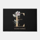 Letter Eモノグラムフローラ。黄金色の茶色の質感で、緑の水色複合金ゴールド、花、葉花粉でアクセントを付けた文字E。名パーソナライズされた前と一致するフォント