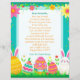 Add your child's name to this customizable letter from the Easter Bunny. On the back is some fun questions for your child to answer. Cute pink, teal, yellow and green letter with Easter eggs, bunny, carrots, flowers i pastel colors.