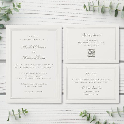 Ecru Formal Romance Modern Classic Triple Wedding 招待状