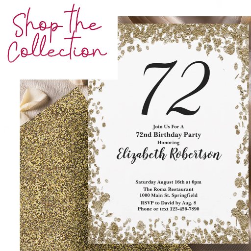 Elegant 72nd Birthday Invitation For Her in Gold 招待状