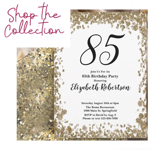 Elegant 85th Birthday Invitation For Her in Gold 招待状