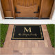 Elegant Black Gold Double Borders Custom Monogram ドアマット