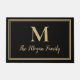 Elegant stylish modern custom monogram doormat in classic black and Gold Double Borders . You can personalize this simple modern black and Gold double borders with your family's last name in script and a serif style monogram initial.