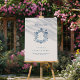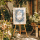 Elegant Blue Floral Crest Striped Back Wedding 招待状
