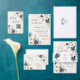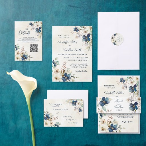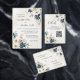 Custom wedding program with elegant dark blue and cream watercolor flowers and winter greenery. Customize these order of ceremony cards with your own text.