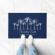 Elegant Blue White Palm Trees Personalized ドアマット