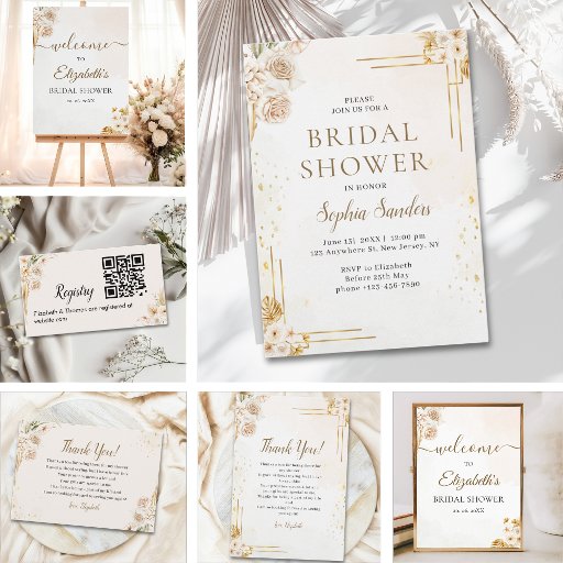 Celebrate your bridal shower in style with our elegant gold and beige floral design, beautifully embellished with gold and beige accents. This sophisticated design sets the perfect tone for a memorable gathering, inviting your guests to join in the joyous occasion with grace and charm. Let this exquisite design be the first glimpse of your bridal shower.
