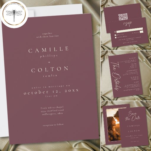 Elegant Burgundy Wine Minimalist Wedding Photo セーブザデート