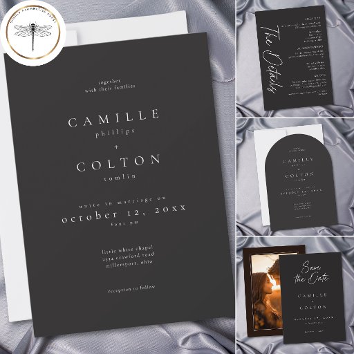 Elegant Charcoal Black Minimalist Wedding セーブザデート