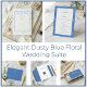Elegant Dusty Blue Floral Line Art Wedding 招待状