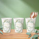 Lovely favor boxes designed as a "to go box" features green and gold eucalyptus leaves for a truly elegant touch. Update the one line of text as you see fit.