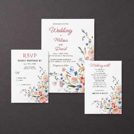 wildflowerswatercolorwildflower weddingelegantfloralboho chic bohemianwedding programwedding pamphletfloral program cardpink flowers programs