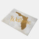 Welcome your guests in style with this classy doormat. The door mat features an elegant design with a faux marble background in various shades of gray along with a rich gold-colored Florida State map. The text reads "Welcome" in a sophisticated gold script font. The doormat is lovely for any Florida resident and makes a perfect gift for those with classic refined taste!