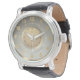 Gift the ultimate blend of style and sentiment with this personalized men's watch. Featuring a sophisticated black leather strap, a sleek silver-tone case, and a distinctive grey dial adorned with a striking gold geometric pattern. Customize the watch face with a name, initials, or a special date to create a truly unique timepiece. Perfect for professional men, this elegant custom watch makes an unforgettable gift for birthdays, anniversaries, graduations, or Father's Day. A modern classic accessory that adds a touch of personalized luxury to any outfit.