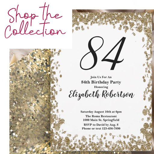 This pretty and elegant gold surprise 84th birthday invitation for her is perfect for a nice party and will set a celebratory tone. The text is larger so you won't need to squint to see it!