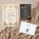 Show your gratitude in Gothic romance style with this elegant thank you card. Featuring a deep burgundy background, black and dark red roses, and ornate gold Victorian borders, it’s the perfect finishing touch for your Gothic-inspired wedding stationery suite.