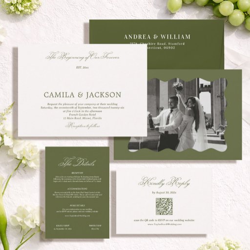 Create a timeless design with this Personalized Elegant Classic White and Green Wedding Invitation, perfect for wedding invitation templates and classy wedding invitations. Featuring a refined style for unique wedding invtations, wedding invitations, and wedding invitation ideas, it suits simple wedding invitations and elegant wedding invitations alike. Ideal for green wedding invitations, modern wedding invitations, wedding invitations template, wedding invitations elegant, victorian wedding invitations, and classic wedding invitations. Perfect for wedding invitation with pictures, old money wedding, victorian wedding, burgundy and green wedding, olive green weddings, green wedding, green wedding theme, sage green wedding, sage green wedding theme, green wedding, brown and green wedding theme, white and green wedding.
