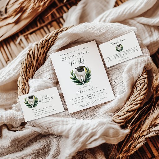 Celebrate your dental school graduate with a refined, emblem-style design featuring a gold metallic tooth, a classic graduation cap, and elegant laurel leaves. The layout is clean and sophisticated, with timeless typography and soft neutral tones that elevate the entire invitation. Perfect for dental grads who appreciate a polished, professional aesthetic with a modern edge. A stylish way to honor their hard-earned achievement.