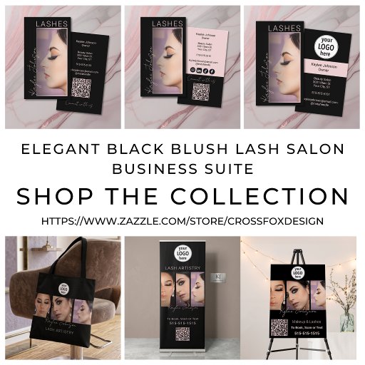 Elegant Black Blush Lash Salon Business Suite デザイン: Lisa Crosby Artistry
