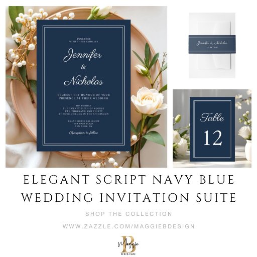 Elegant Script Navy Blue Wedding Invitation Suiteデザイン: Maggie B Design