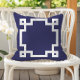 Elegant Navy Blue White Greek Key Border アウトドアクッション