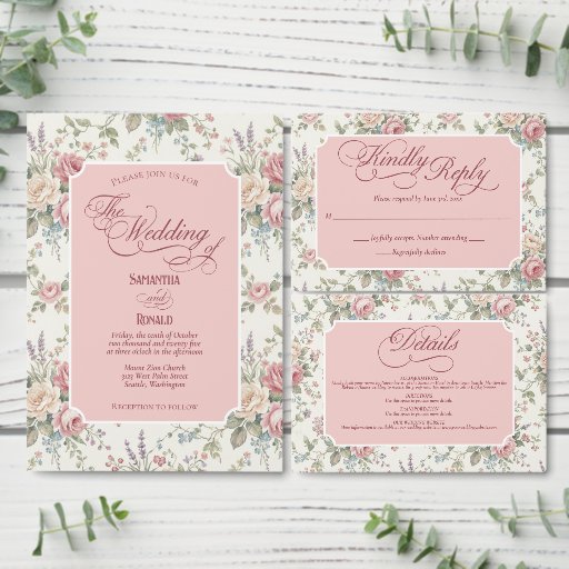 Ribbon featuring featuring pastel rose bouquets and a shabby chic design.