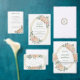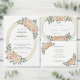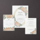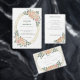 Elegant Peach Floral & Gold Lattice Oval Wedding 出欠カード