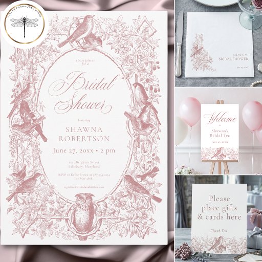 Elegant Pink Chinoiserie Nature Bird Bridal Showerデザイン: Kathe Santillo