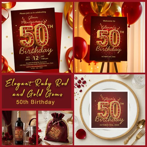 Elegant Ruby Red and Gold Gems 50th Birthdayデザイン: Kristina Lj Petrovska