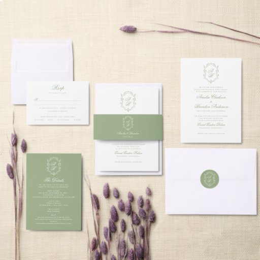 Classic Sage Green Floral Monogram Crest Weddingデザイン: Jessica Senarlo