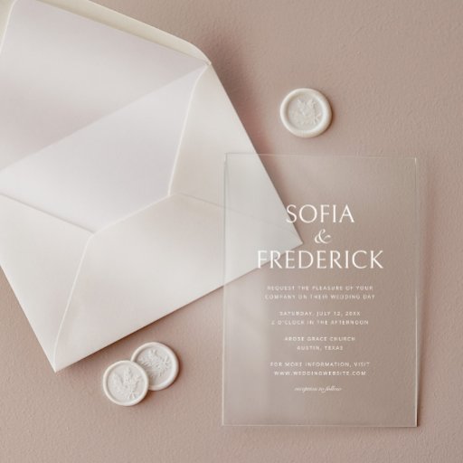 Bring a refined and contemporary feel to your event with this elegant script modern transparent white acrylic invitation. With a minimal layout and graceful lettering, it creates a polished presentation that blends simplicity with a striking visual aesthetic!